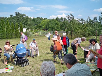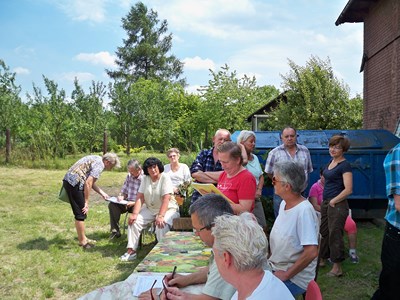 Przedstawiciele Zarządu w osobach; pani prezes Alina Malesa, Zbigniew Dziubiński, Stanisław Szafrański oraz Stanisław Kalisz towarzyszyli nam w spacerze alejami swojego pięknie zagospodarowanego ogrodu.