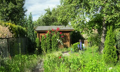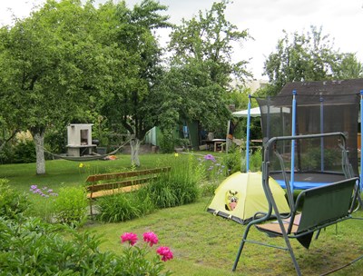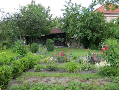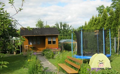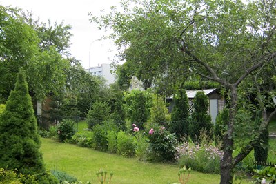 W ogrodzie jest jeden aktywny gołębiarz. Osobiście nie widziałam go, bo też niewiele można było obejrzeć przez olbrzymie, gęste żywopłoty okalające działki. Dwie działki czekają na nowych użytkowników.