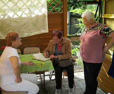 Miłym akcentem zwiedzania tego ogrodu było zaproszenie na kawę przez sympatyczne działkowiczki - panią Monikę Wojdytę i jej córkę Ewę Rusiecką. Przerywają pracę, aby nam opowiedzieć jak tu się żyje. „Fajnie! Super sąsiedzi i aktywny wypoczynek.”