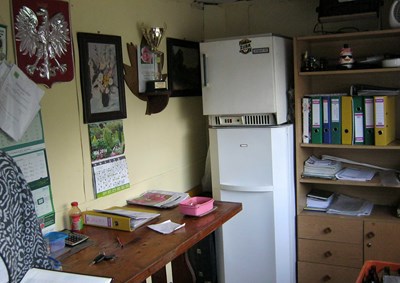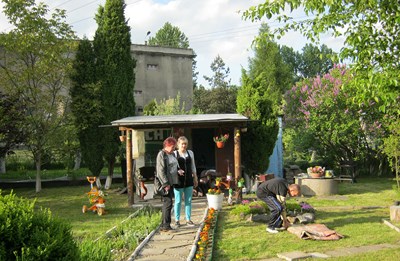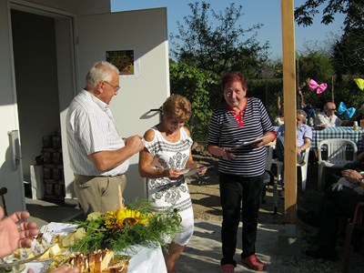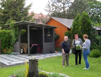 Prezentacji najciekawszych miejsc ogrodu dokonuje prezes pan Robert Cyran a opowiada nam o ogrodzie jego żona pani Bożena Cyran. Prezes jest zajęty usuwaniem awarii sieci elektrycznej a my staramy się nie przeszkadzać. Pani Bożena zaznacza, że to naprawdę rodzinny ogród, tu żyje się w zgodzie. Większość działkowców -około 85% to okoliczni mieszkańcy.
