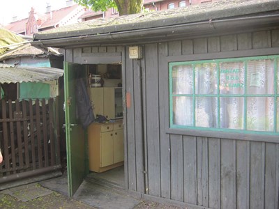 Pokazuje nam bardzo wysłużony Dom Działkowca wiele razy remontowany.