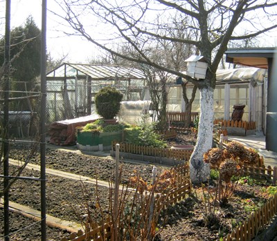 Niestety nie zastajemy na działce prezesa Zarządu pana Zenona Bitkowskiego. Miałam przyjemność gościć w tym ogrodzie wielokrotnie i spotykam znajomych działkowców. Pracy po zimie w porządkowaniu działek jest wiele, więc staram się nie przeszkadzać.