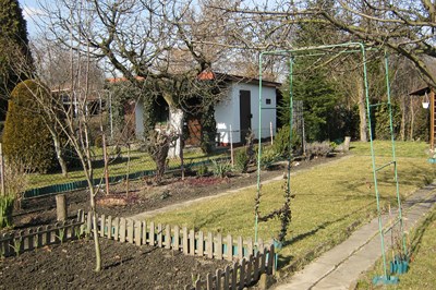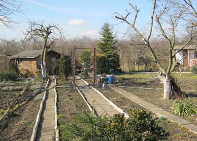 Po ogrodzie położonym na 6ha oprowadzają mnie członkowie Zarządu. Działki w ilości 206 są bardzo różnie zagospodarowane. Coraz więcej jest typowo rekreacyjnych -szczególnie tych przejętych przez ludzi młodych. Ogród uzbrojony jest w sieć wodociągową i elektryczną.