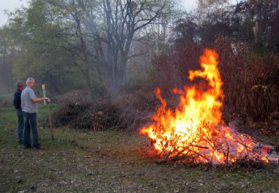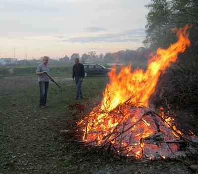 Suche gałęzie (bez liści) zalegające na działkach ściągamy na parking przy ogrodzie przez tydzień poprzedzający imprezę. Po uprzedzeniu Straży Miejskiej i Straży Pożarnej o miejscu, czasie i odpowiednim zabezpieczeniu można się dobrze bawić i pozbyć ściętych drzew.