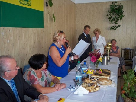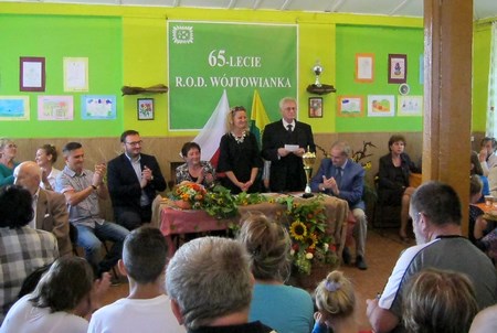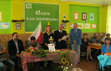 W dniu 12.09.2015r uroczyście obchodzono doniosłą rocznicę ogrodu połączoną z dorocznym Dniem Działkowca. Ogród do tej imprezy przygotował się bardzo starannie z dużym zaangażowaniem Zarządu i wielu działkowców. Wystrojem Domu Działkowca zajęła się diałkowiczka- zawodowa florystyka pani Joanna Dębska. Zebranych działkowców i gości przywitali członkowie Zarządu pan prezes Wojciech Dudziński i pani Ewelina Pniewska oraz przewodniczący Komisji Rewizyjnej pan Mariusz Dębski. Uroczystości zaszczycił swą obecnością v-ce prezes OZ Śl. PZD pan Tadeusz Kosowski. Dla zaznaczenia rangi 65-lecia jubileuszu oraz z sympatii do działkowców ROD„Wójtowianka” przyjechali również złożyć życzenia kierownik Delegatury-Jan Pękala, przewodniczący Delegatury-Stanisław Kalisz oraz członek Krajowej Komisji Rewizyjnej-Zenon Jabłoński. Gościem był również sympatyk ogrodów pan Marek Morawiak-redaktor naczelny lokalnej gazety „Tydzień w Gliwicach”.