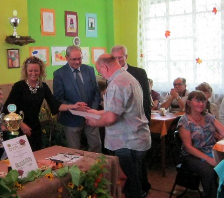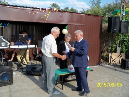 W dalszym wystąpieniu podziękował działkowcom za pracę i trud włożony, aby działki były piękne i zadbane. Pragnę podziękować wszystkim, którzy przyczyniają się do estetycznego wyglądu naszego ogrodu a w szczególności osobom pracującym społecznie. Następnie dokonano wręczenia dyplomów dla wyróżniających się działkowców. Wystawę plonów przygotowali Panie Irena Harłoszyńska, Ilona Janecka, oraz Irena Borończuk. Po części oficjalnej był poczęstunek oraz zabawa taneczna, do której przygrywał zespól,, TON’’