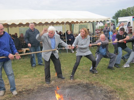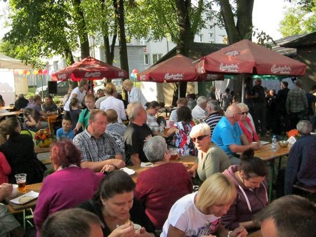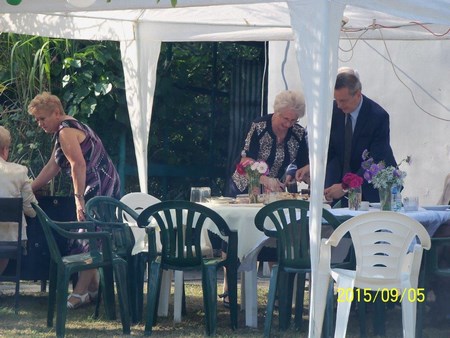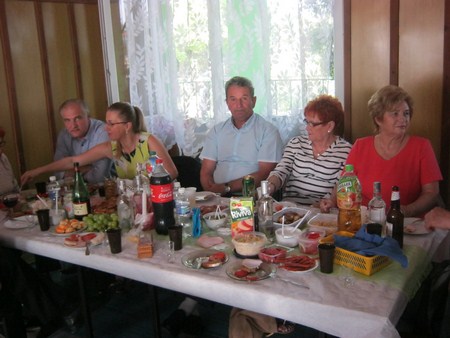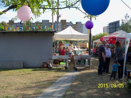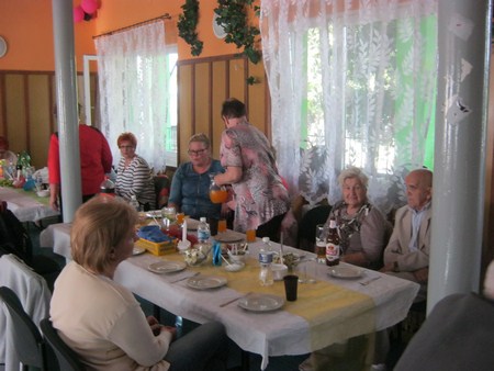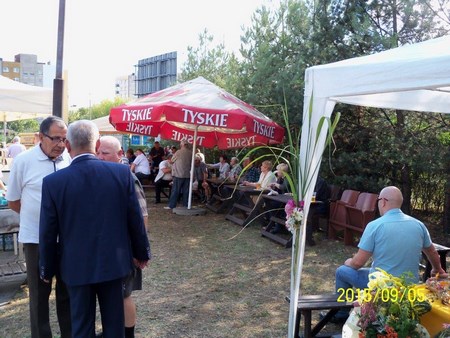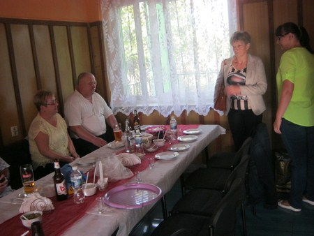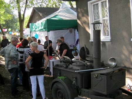 Po części oficjalnej zaproszono wszystkich na pięknie udekorowany plac na wspólną biesiadę. Serwowano grochówkę, żurek i piwo. Dla dzieci była wata cukrowa. Również wypieki działkowiczek znalazły uznanie wszystkich smakoszy słodkości. Piękna pogoda i dobre humory sprzyjały wspaniałej wspólnej zabawie. Jak się dowiedziałam trwała ona do godz 3 !!!