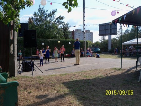 Następnie odbyły się konkursy dla dzieci (rzut do kosza, strzał na bramki) Dla dorosłych przeciąganie liny Konkurs na Najładniejszą działkę ROD Pszczółka 2015r. Wystawę plonów Po konkursach Pan Prezes wręczył nagrody i zaprosił działkowców do zabawy która trwała do późnych godzin wieczornych. Do tańca przygrywał DJ Maestro