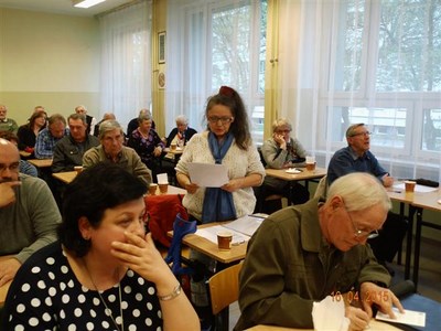 W trakcie oczekiwania na rozpoczęcie obrad, jako przedstawiciel Delegatury PZD Gliwice, udzieliłam informacji na temat zmian w prowadzeniu ogrodu, jakie wniosła Ustawa o ogrodach z 13grudnia 2013roku. O wyznaczonej godzinie, zebranych przywitał i rozpoczął zebranie prezes ogrodu pan Antoni Falikowski.