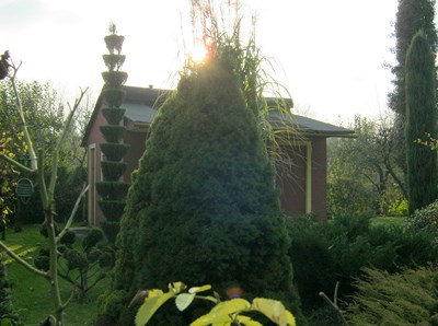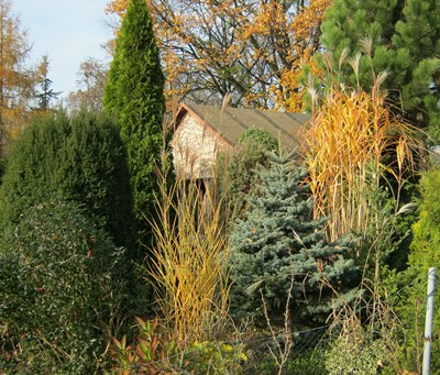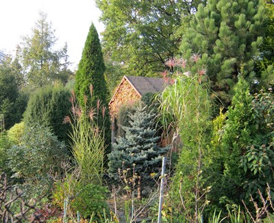 Państwo Kowalik są pasjonatami oryginalnych iglaków. W ogóle działka ma fajny klimat i dużo ciekawych roślin.