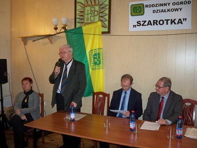 Prezes PZD Eugeniusz Kondracki wręczył wszystkim obecnym pisemne podziękowanie od Krajowej Rady PZD, w którym czytamy „za pracę w pionie rozjemczym Polskiego Związku Działkowców, który stał na straży obowiązującego prawa oraz przyczynił się do łagodzenia obyczajów w ogrodach. Komisje Rozjemcze stosując prawo związkowe uczyły tego prawa. W ten sposób miały istotny wpływ na poczucie bezpieczeństwa wśród działkowców i pozytywny wizerunek Związku. Składając serdeczne podziękowania żywię głęboką nadzieję na dalszy Pański udział w strukturach Związku służąc radą i doświadczeniem w pracy na rzecz działkowców, ogrodów i Związku. Pozostańmy razem we wspólnej pracy i walce.”