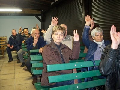 W przerwie udzieliłam informacji na temat celu tego zebrania i rangi podjętej decyzji. Poinformowałam również działkowców o nadal istniejącym zagrożeniu bytu naszych altan. W zebraniu drugiego terminu tak jak w poprzednim dokonano wyboru Komisji Mandatowej oraz Komisji Uchwał. Odczytano Porządek zebrania oraz Regulamin. Poprzez głosowanie wszystkie punkty porządku zebrania zostały zaakceptowane.
