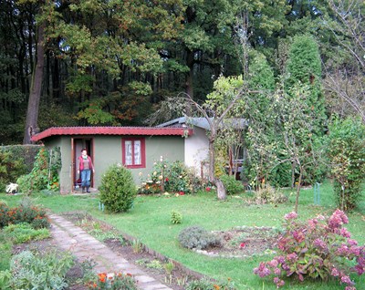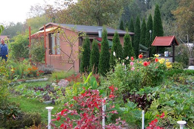 Spacer kończymy w sektorze piątym na jednej z ostatnich działek. Już od furtki wita nas ciepłym uśmiechem pani Janina Piasny (dla przyjaciół Agatka). To jedna z ładniejszych i ciekawszych działek w ogrodzie.
