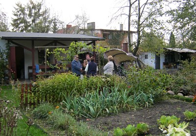 Na działkach trwają typowo jesienne prace kończące sezon. Pogoda sprzyja też spotkaniom towarzyskim. Ogród żyje.