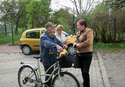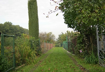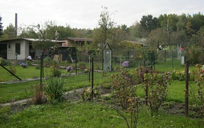 Pan Łukasz Zając -prezes ogrodu wraz z panią skarbnik zabierają nas na wędrówkę po ogrodzie. Na niektórych alejkach widać wyraźnie ślady po ryciu przez dziki, które podchodzą tu z lasu. Cały ogród otoczony jest solidnym płotem zabezpieczającym niszczenie działek przez leśne zwierzęta. W ogrodzie jest jeszcze jeden pszczelarz. Pan prezes nieśmiało napomyka nam o swoich marzeniach. Chciałby mając zaplecze i taką ładną okolicę udostępniać ogród grupom emerytów. Tu znaleźliby ciszę, swobodę a przede wszystkim obcowanie z przyrodą.
