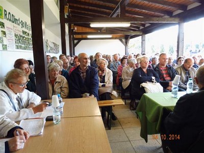 W dniu dzisiejszym(18.10.2014r) ROD Urbana decydował o przynależności ogrodu do stowarzyszenia. Zebranie wszystkich działkowców rozpoczęło się zgodnie z powiadomieniem listem poleconym o godzinie 16 tej. W związku z trudnościami personalnymi Zarządu pełniłam rolę wspomagającego przeprowadzenie zebrania. Czuwającym nad prawidłowością jego przebiegu był przedstawiciel Delegatury PZD w Gliwicach pan Henryk Sadowski, któremu towarzyszył również członek naszej Delegatury pan Zdzisław Prejzner. Prezes ogrodu pani Agnieszka Belkner została wybrana przewodniczącą zebrania. Ukonstytuowały się Komisje: Mandatowa i Komisja Uchwał. Odczytano i przegłosowano porządek i regulamin. Po przeliczeniu głosów Komisja Mandatowa stwierdziła na 85 działkowców uczestniczy w zebraniu 39, co nie zezwala na podjęcie Uchwały. Zebranie zostało zamknięte.