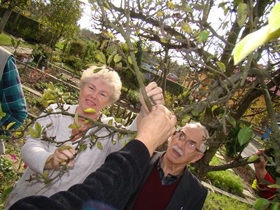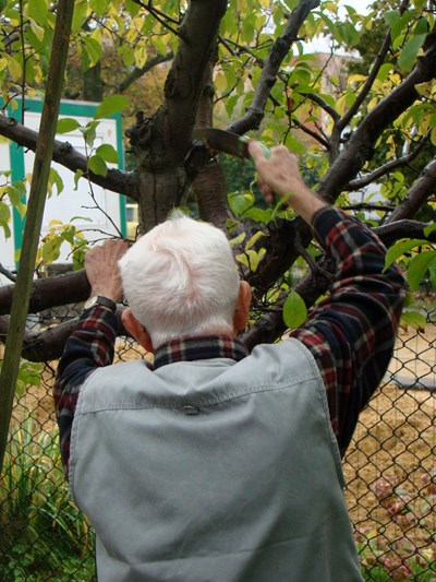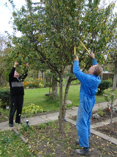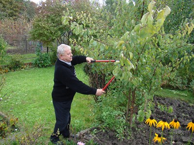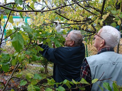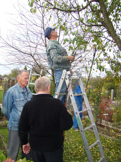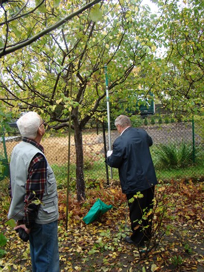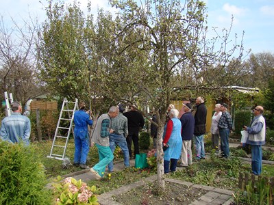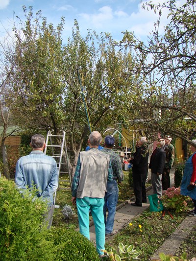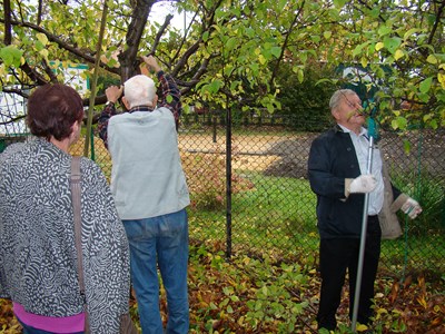 Część teoretyczna prowadzona przez Pana Tadeusza z zakresu cięcia drzew i krzewów, oraz Panie Barbarę Głogowską i Annę Kajdanowicz w innych interesujących działkowców tematów zakończyła się wyjściem na teren ogrodu. Tam dokonano pokazowych cięć śliw. W szkoleniu uczestniczył Pan Marek Bieniek Prezes Stowarzyszenia Zgoda i Przyszłość w Gliwicach wyjątkowo zainteresowany ekologiczną ochroną i nawożeniem roślin. Nie omieszkał podzielić się z zebranymi swoją wiedzą w tym temacie.