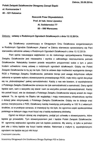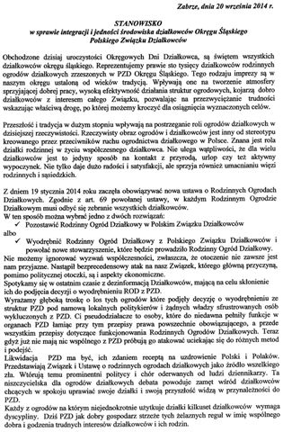 Na zakończenie zebrani podjęli dwa stanowiska do RPO pani Ireny Lipowicz oraz stanowisko w sprawie integracji i jedności środowiska działkowców Okręgu Śląskiego Polskiego Związku Działkowców. stanowiska w załączeniu.