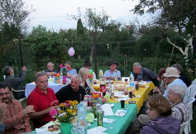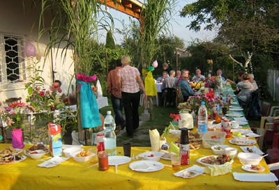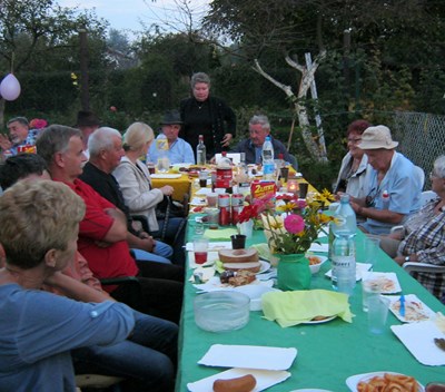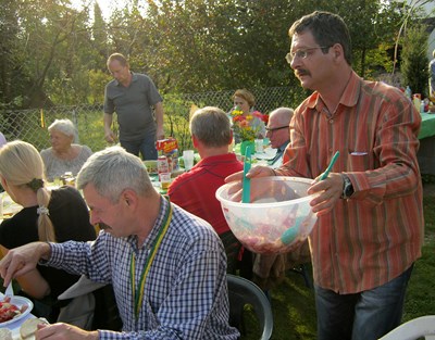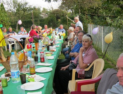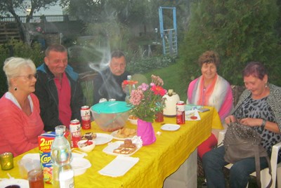 Pani prezesowa Alicja Żukowska dbała, aby nikomu niczego nie brakowało na stołach. Wielu działkowców włożyło masę trudu w przygotowanie tego święta, ale szczególnie pragnę podziękować panu Januszowi Bieńkowi, który od wielu lat najcięższą pracę bierze na siebie. Trochę dały nam się we znaki wyjątkowo uciążliwe komary. Aby je odgonić kopciliśmy wszystkim, co dało się wynaleźć….bez skutku. Chyba najważniejsze było to, że byliśmy razem.