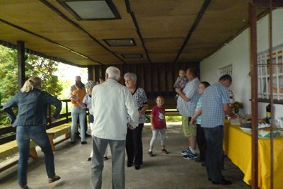 na poczęstunek i do wspólnej zabawy. W trakcie biesiady zorganizowano wiele konkursów dla dzieci oraz dorosłych, między innymi rzut do kosza, strzał na bramkę, przeciąganie liny i okaz z działki.
