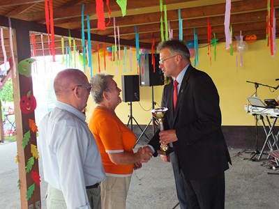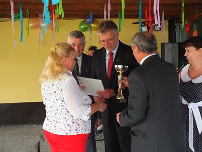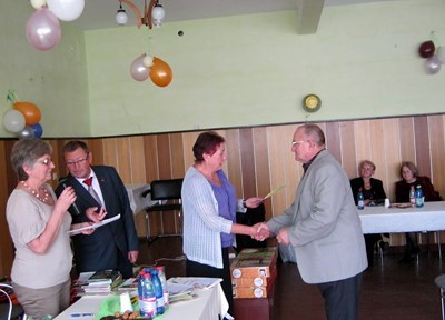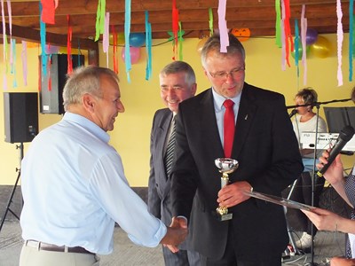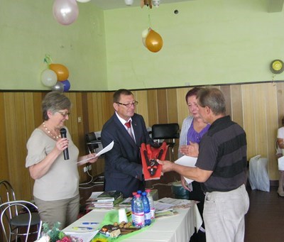 Po przywitaniu głos zabrał Prezydent Pan Adam Rams, wręczył Prezesowi Panu Henrykowi Globisz okazały puchar za propagowanie idei ogrodnictwa działkowego w mieście.