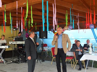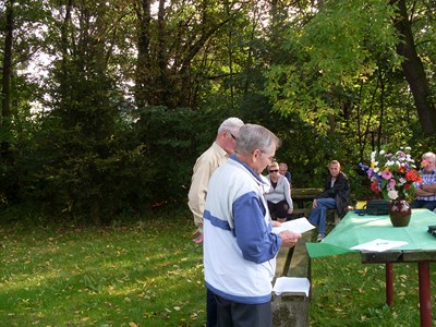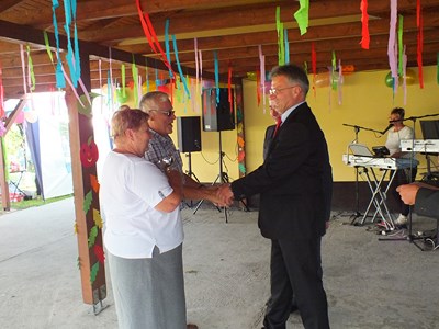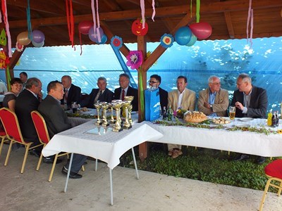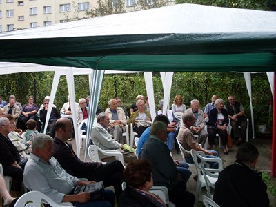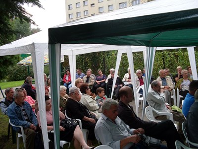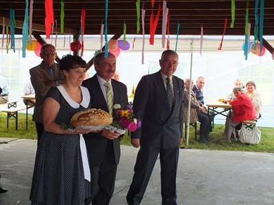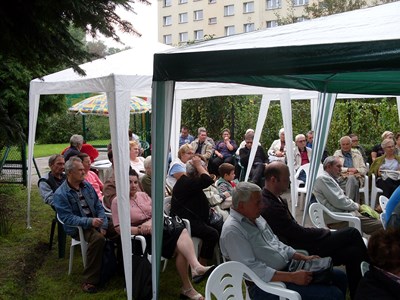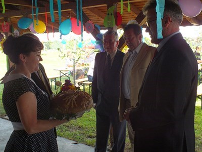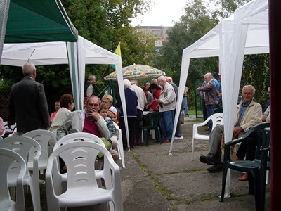 Pan prezes Henryk Globisz przywitał działkowców przybyłych na dożynki oraz zaproszonych gości w osobach: Pana Adama Ramsa ─ Prezydenta Miasta, Pana Jansa Trzesioka ─ Przewodniczącego Rady Miasta, Pana Jerzego Pacha V─ ce Przewodniczącego Rady Miasta, Pana Dawida Ramsa ─ Radnego powiatu, Pana Franciszka Szfarza ─ Radnego Miasta oraz Pana Stanisława Kalisza członka OZŚL w Katowicach.