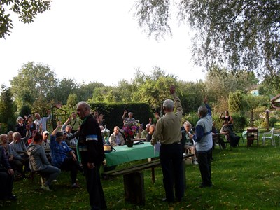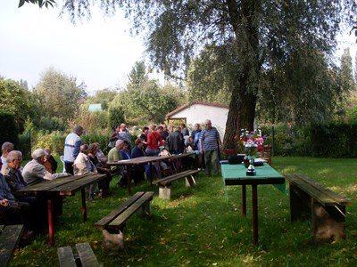 W dniu 13.09.2014r o 15 godz. w świetlicy ogrodu „Kwiat Jabłoni” rozpoczęły się doroczne dożynki. Przybywających działkowców witał, elegancko ubrany, pan prezes Zenon Bitkowski. Część oficjalną otworzył witając gości – prezesa ROD Śnieżka pana Zdzisława Kowalika z małżonką oraz przedstawiciela Delegatury OZ PZD w Gliwicach( w tym wypadku mnie).