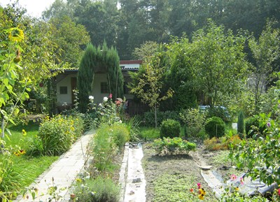 Tym, co robi dla mnie ten ogród wyjątkowym jest przede wszystkim las, który bezpośrednio przylega do działek. Zwierzęta granicy nie widzą odwiedzając często działkowców. Można spotkać zaskrońce, wiewiórki rude i czarne, a zimą i dziki potrafią odwiedzić. Zaprzyjaźnione ptaki rozsmakowały się w borówkach amerykańskich. W lesie są aleje spacerowe i siłownia, z której również korzystają działkowcy.