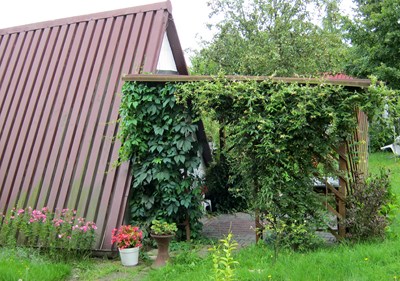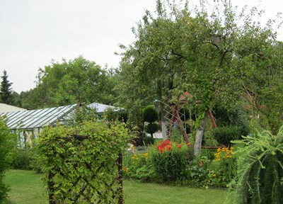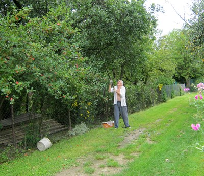 Podziwiając sierpniowe uroki przyrody docieramy do działkowca, który po krótkiej rozmowie okazuje się być specjalistą od przycinania drzew-ale nie owocowych. Nawet nie musiałam specjalnie namawiać do wykorzystania tych umiejętności. Teraz to już kandydat na instruktora SSI, tylko szkolenie i przygotowanie pod względem ogrodniczym a ogród zyska swojego instruktora.