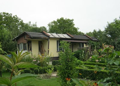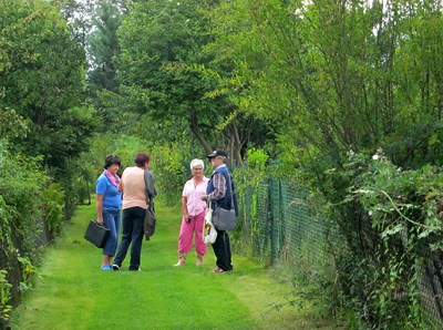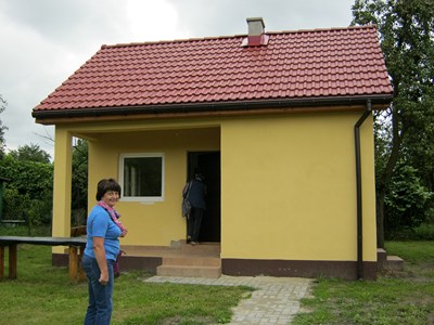 Szerokimi, zadbanymi alejami oprowadza nas członek Zarządu(a moja koleżanka) pani Janina Banasik. Mijamy wiele pięknych, dobrze zagospodarowanych działek. Spacerkiem docieramy do nowo wybudowanego budynku gospodarczego, który jest również biurem i posiada mały aneks kuchenny.