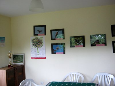 Tu dołącza do nas pan prezes Maciej Zabłocki Zagospodarowanie wnętrza biura jeszcze nie jest pełne, ale na ścianie wiszą zdjęcia ptaków. Moment wcześniej słyszałam jak jeden z działkowców wołał, że „złapał” na zdjęciu dwa odlatujące bociany, a więc te zdjęcia to niewycięte z gazet, lecz dzieło działkowców! Super sprawa!