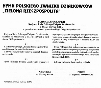Uchwałą z dnia 21 czerwca Krajowa Rada PZD ustanowiła utwór